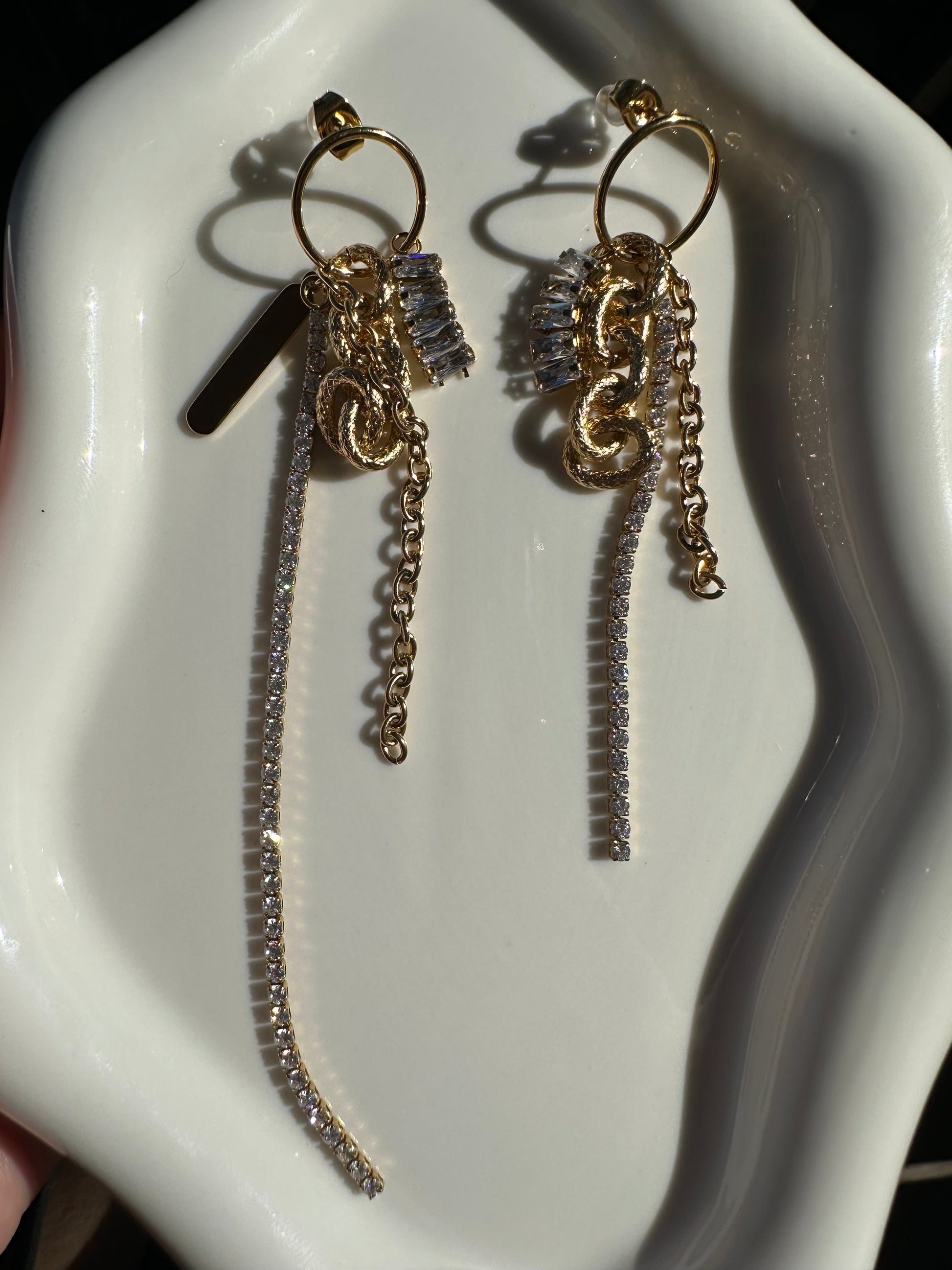 Laissez briller votre élégance avec Iriza, une paire de boucles d’oreilles dorées au design délicatement asymétrique et scintillant.