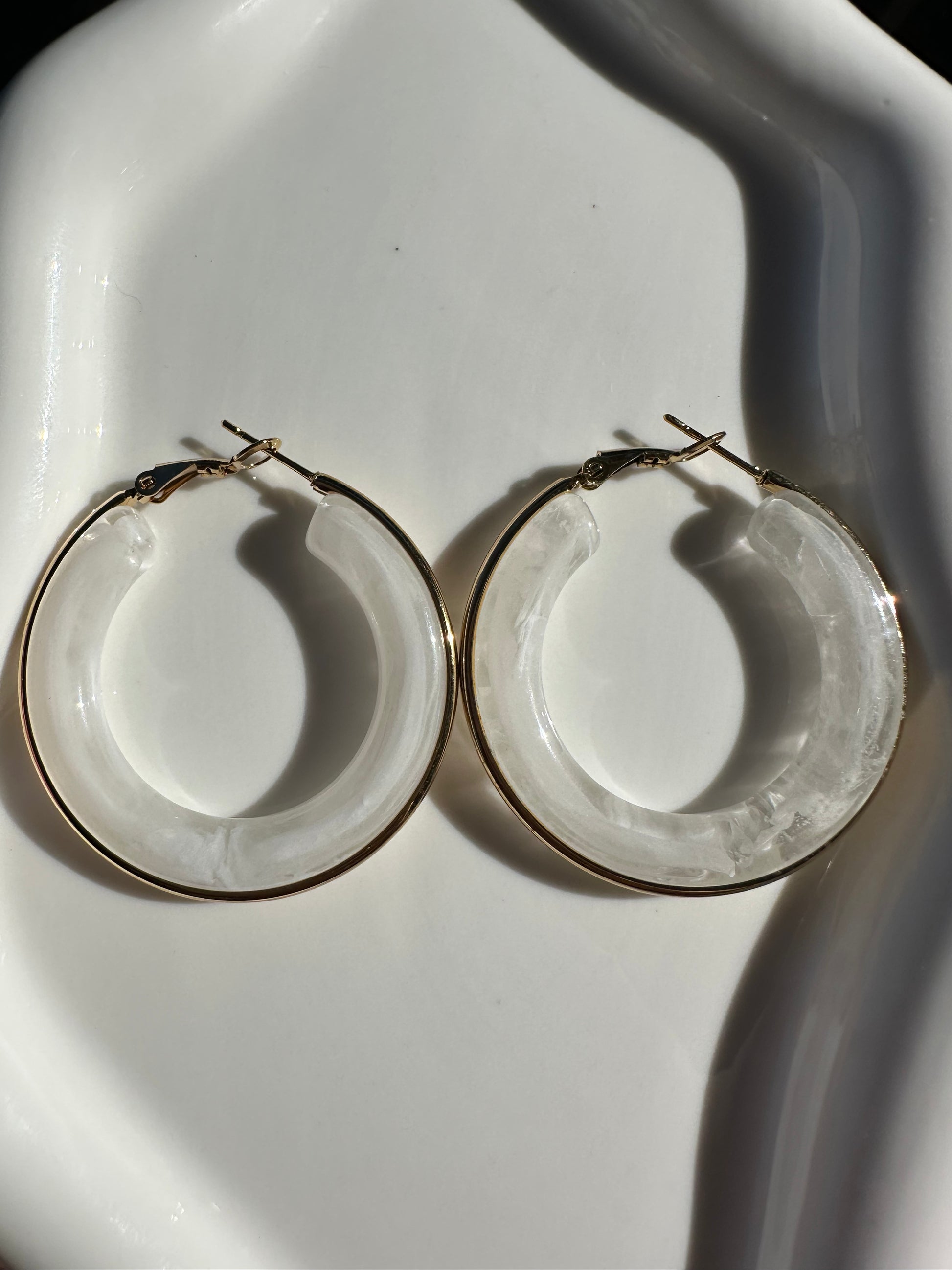 Minimalistes mais puissantes, les boucles d’oreilles "Nébuleuse Blanche" capturent la douceur de la lumière dans une boucle épaisse en résine effet nacré. Leur blanc irisé évoque une brume céleste, contrastée par un cerclage doré élégant. C’est l’accessoire parfait pour un look épuré, chic, et résolument moderne.