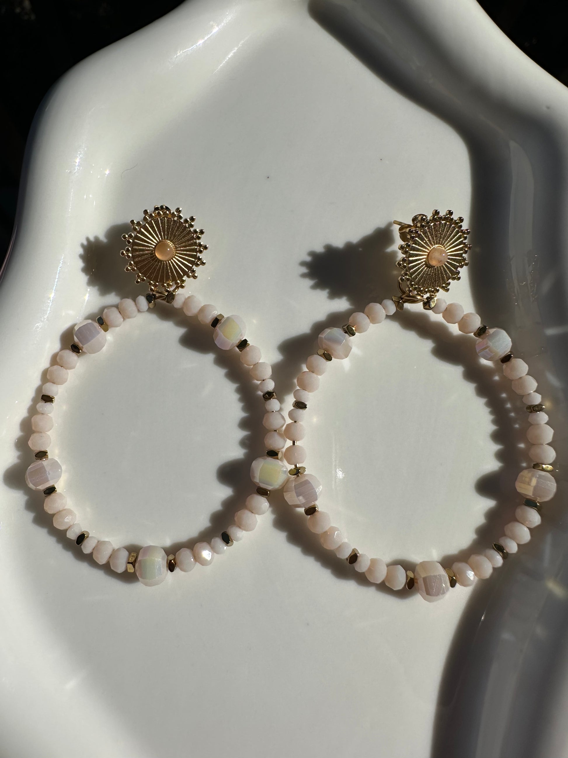 Apportez une touche d’élégance solaire à votre look avec les boucles d’oreilles Solstice Nacre . Conçues en acier inoxydable doré, elles résistent au temps, à l’eau et aux aléas de la vie quotidienne. Le détail perlé nacré subtilement rosé est délicatement agencé autour d’un cercle lumineux, suspendu à un clou effet soleil vintage.