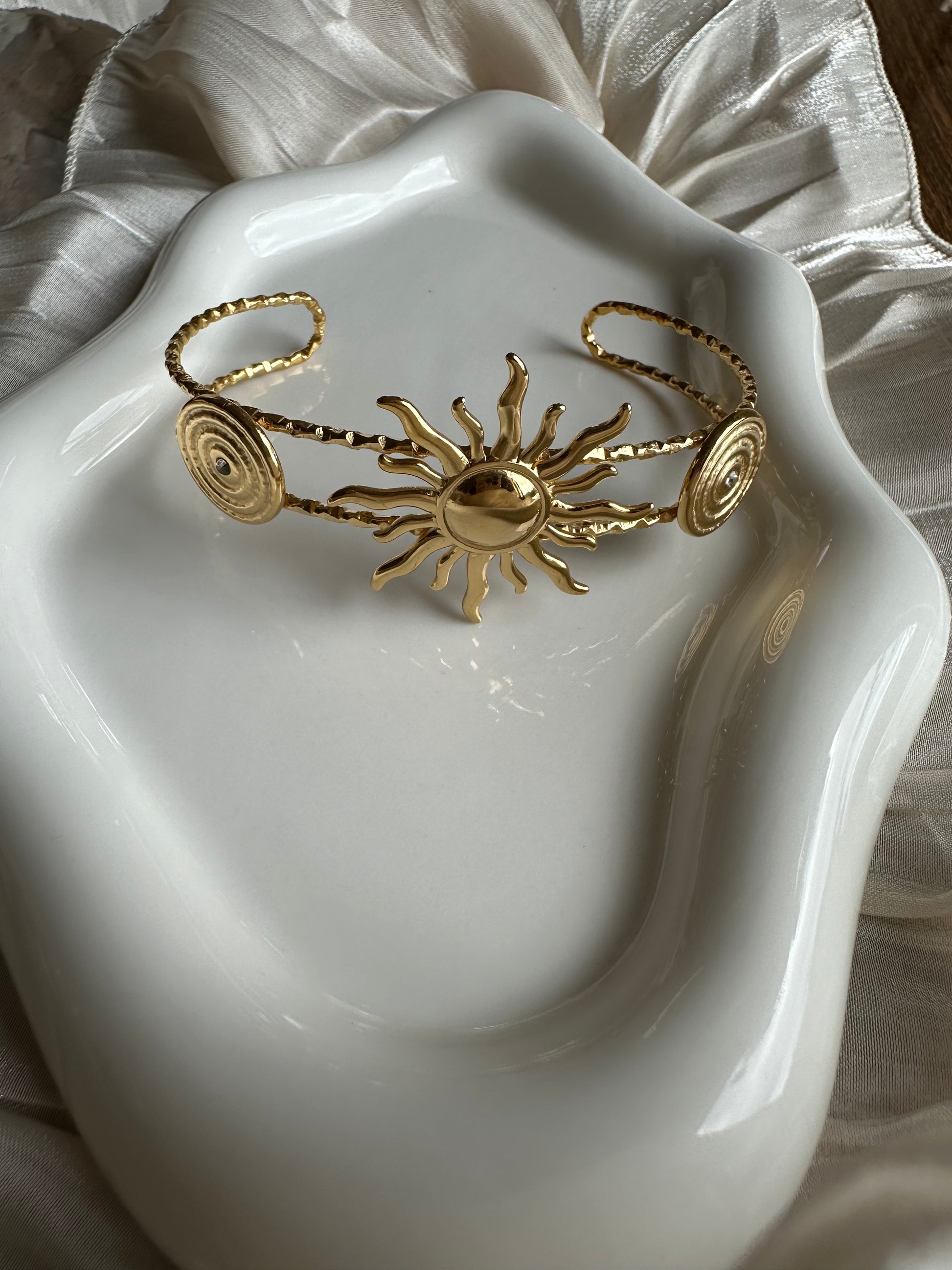 Le bracelet Aurora en acier inoxydable doré est une véritable ode à la féminité et à la lumière. Son design délicat apporte une touche chic et intemporelle, tout en restant moderne et facile à porter.