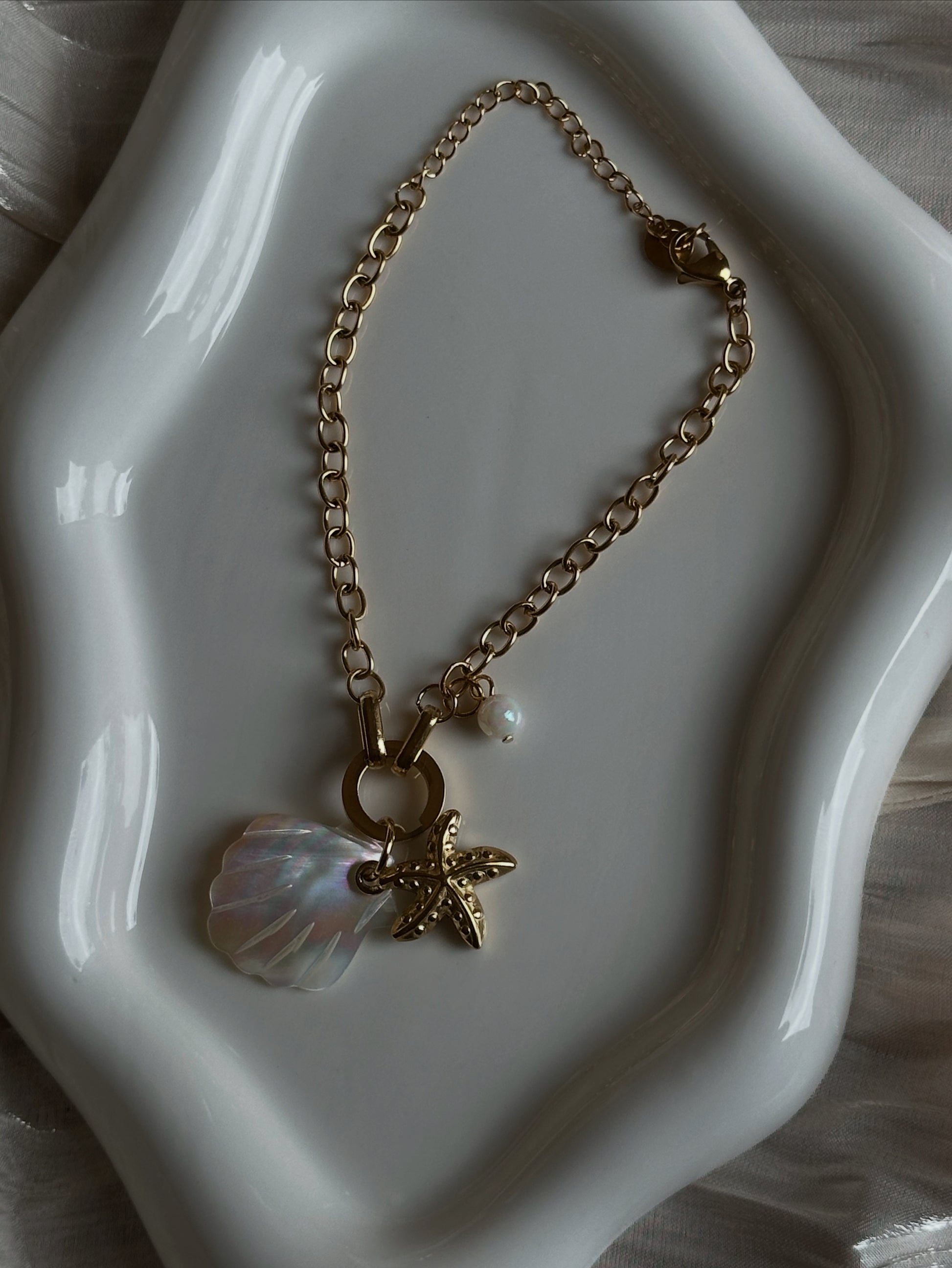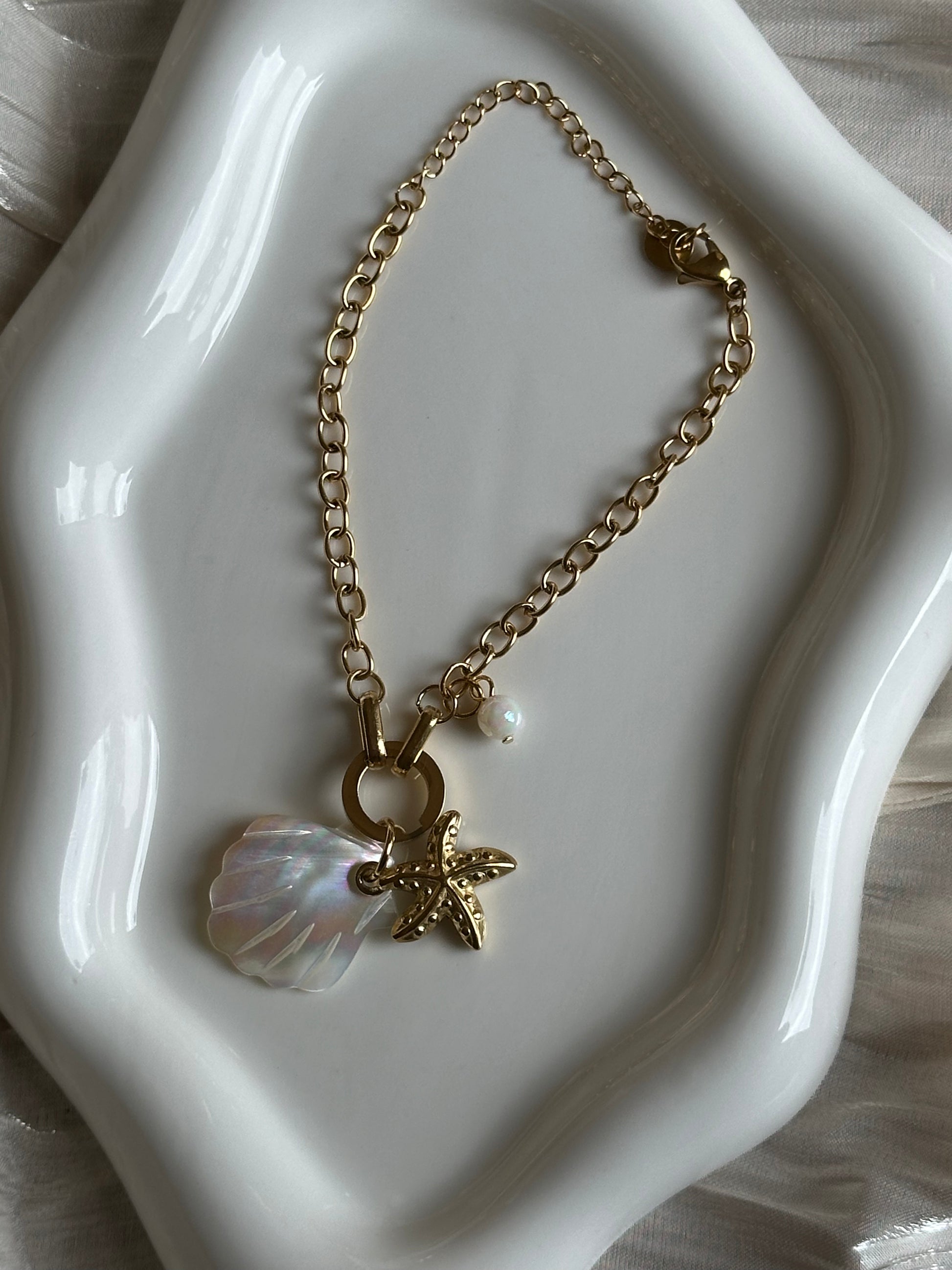 • Charms : Coquillage nacré, étoile de mer, perle