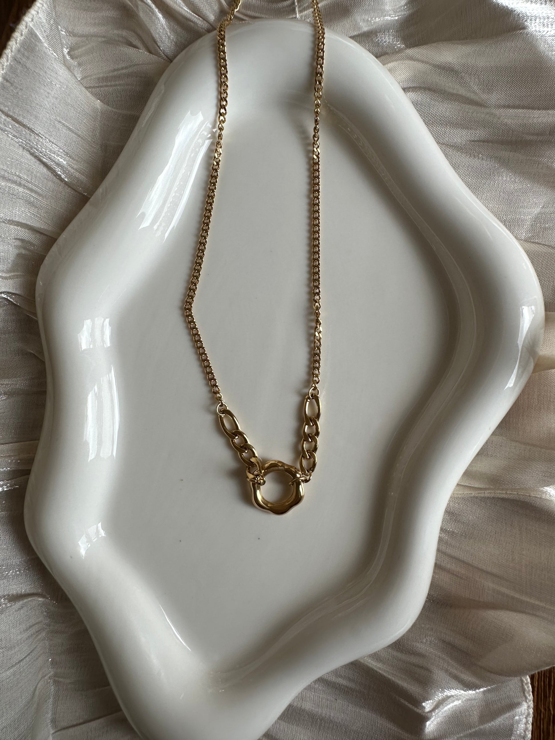 Illuminez vos tenues avec le collier Rayon d’Aurore, un bijou raffiné en acier inoxydable doré. Son design délicat et intemporel reflète la douceur et l’éclat des premiers rayons du soleil. Léger et élégant, il se porte aussi bien au quotidien que lors de vos plus belles occasions.